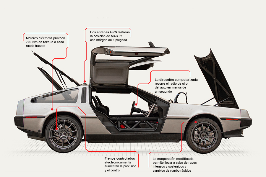 Ingenieros de la Universidad de Stanford crearon a MARTY, un Delorean que derrapa por sí mismo como los mejores pilotos de drift, para investigar el comportamiento de los coches autónomos en situaciones de poco o nulo control.
